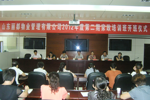 2012年7月25日“山東麗都物業(yè)管理有限公司2012年度第二期家政培訓(xùn)班開班儀式”開班典禮在濱州市財政局會議室隆重舉行。