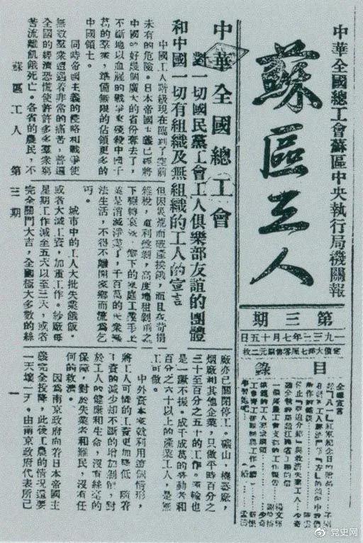 ▲1933年7月15日,劉少奇在《蘇區(qū)工人》報第三期上發(fā)表《停止“強迫介紹”與救濟失業(yè)工人》和《模范的工人要求綱領》兩篇文章。